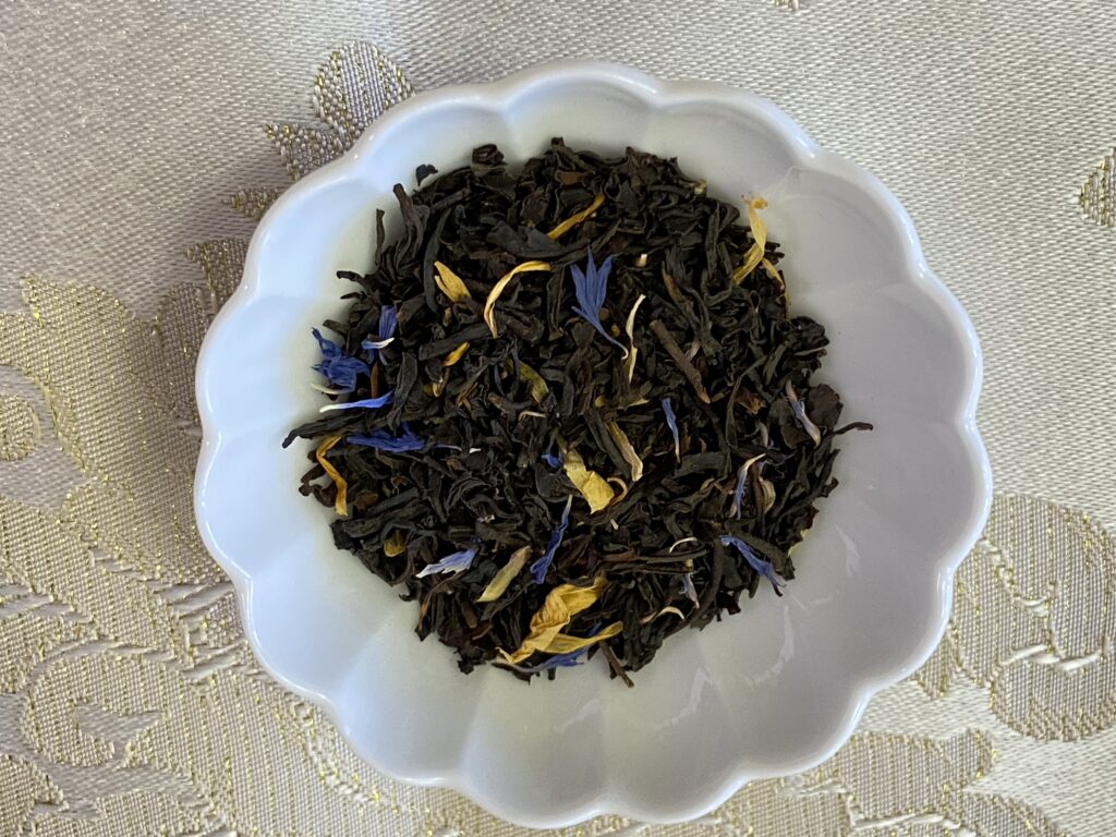 『ボレロ』の茶葉には、黄色と青色の花びらが入っています。これは、茶葉に花のエッセンスが加えられたことを示しています。この特徴的な花びらは、視覚的にも美しく、茶葉に鮮やかな彩りを添えています。