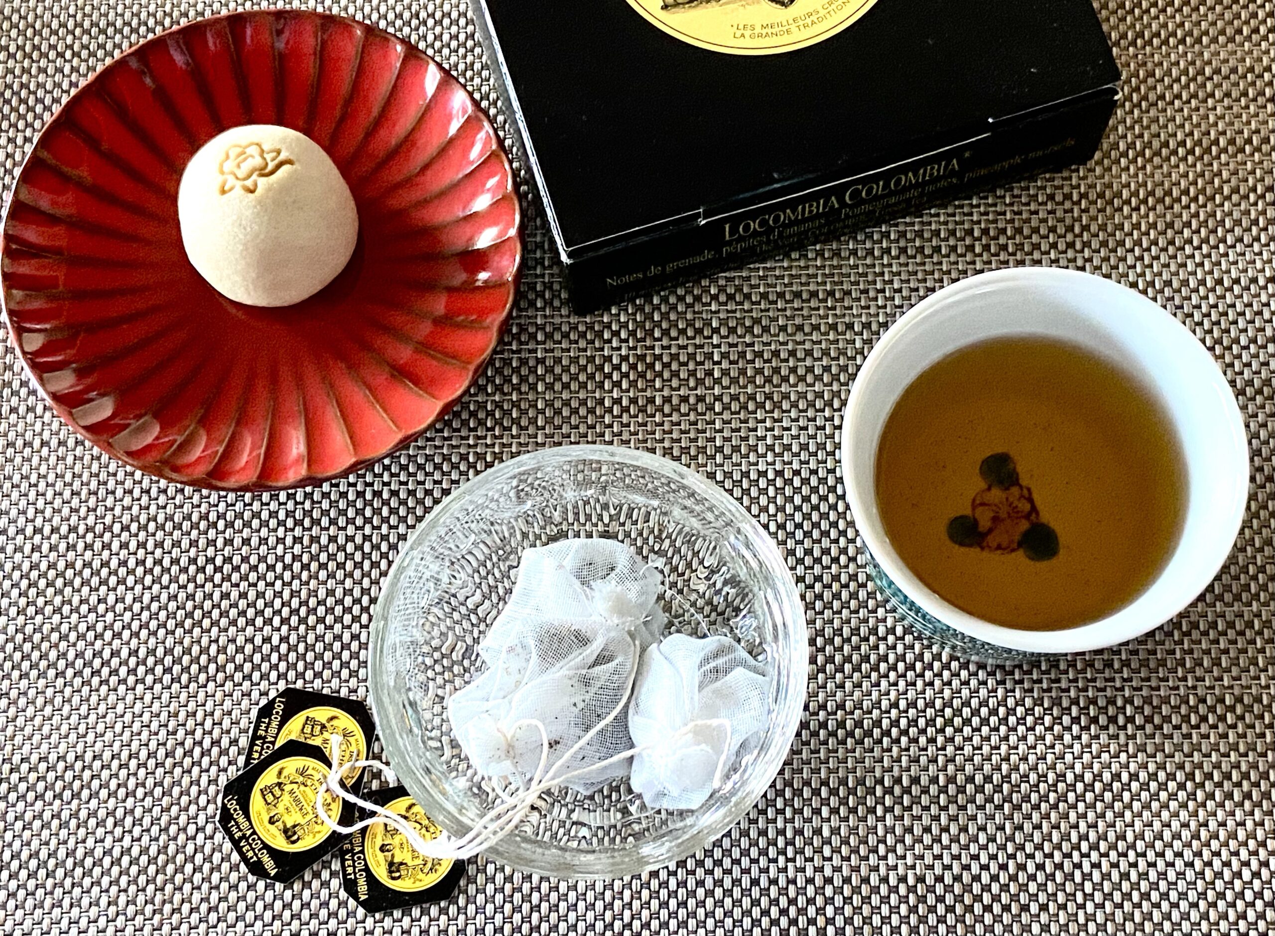 さて、本日は大好きな和菓子のお供に、マリアージュ、フレールの緑茶、コロンビアコロンビアでティータイムでした。